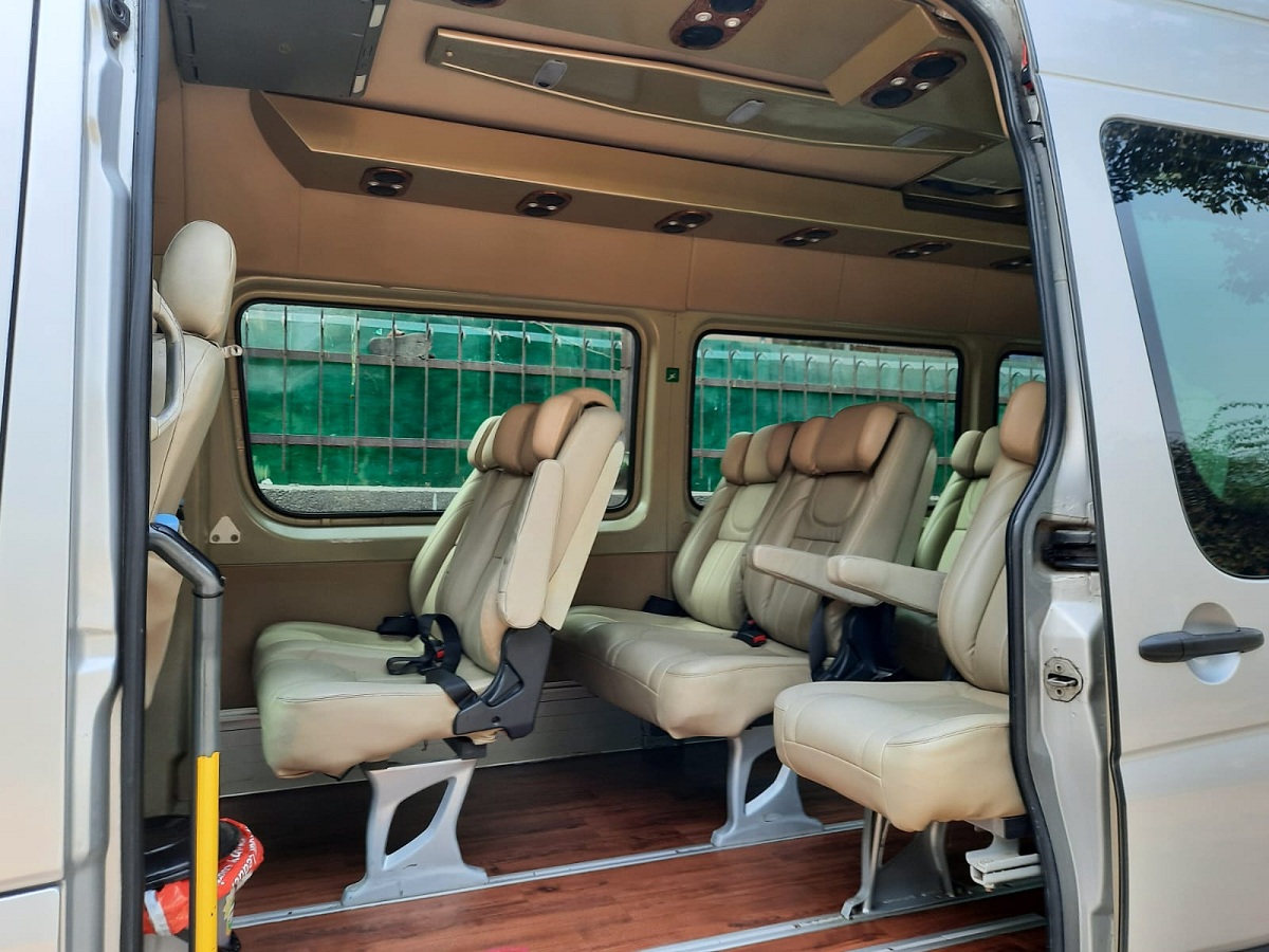 Book our top class Mercedes Sprinter luxury van rental service in Noida with well trained uniform drivers. We offer brand new 9 to 13 seater Mercedes Sprinter imported van on rent in Noida with great comfort, safety features and plenty of space for luggage. Book our Mercedes Sprinter super luxury van prestigious collection of world-class brands can be done for Leisure Trips, VIP Meetings & Conventions, Business Travel, Wedding, Corporate Meeting, Video Shoots, Celebrity and Outstation Trip. We offer Mercedes Sprinter imported van rental service in Noida with technologically cutting-edge, which guarantee performance, comfort and aesthetics that only the top of the range can offer. We provide Mercedes Sprinter VIP luxury minivan online booking in Noida for Local Packages and Outstation Trips from Noida for family holidays, corporate trip, individual and group tours, airport pickup and drop include comfortable seats, seat belts and the latest audio visual equipment with great discount offers. The Mercedes Benz Sprinter vans are available in Delhi & Mumbai Only. For booking in other cities Mercedes Sprinter Imported minivan will be sent from nearby metro cities. Charges applicable.